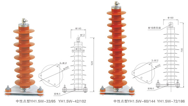 中性點避雷器 YH1.5W-33/85 YH1.5W-42/102 YH1.5W-60/144 YH1.5W-72/186