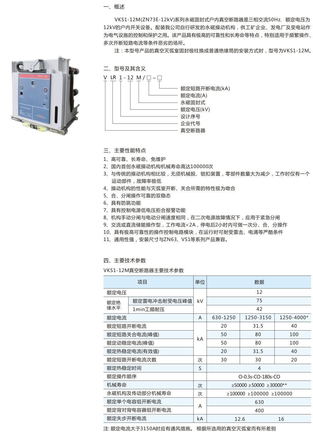 • VKS1-12M永磁固封式戶內(nèi)真空斷路器