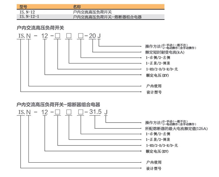 IS.N-12系列戶內交流高壓負荷開關是采用壓氣式滅弧原理,由于其獨特的結構設計,能夠充分利用開關分閘過程產生的壓縮空氣吹滅電弧。性能滿足GB3804-2004《3.6kV~40.5kV 高壓交流負荷開關》、GB16926-2009《高壓交流負荷開關—熔斷器組合電器》國家標準的要求。適用于交流12kV, 頻率50Hz 的高壓網(wǎng)絡中,作為合、分負載電流, 過載電流及關合短路電流之用, 與高壓限流熔斷器及脫扣裝置組合成IS.N-12-1 系列戶內交流高壓負荷開關-- 熔斷器組合電器,可以可靠開斷額定短路電流。
