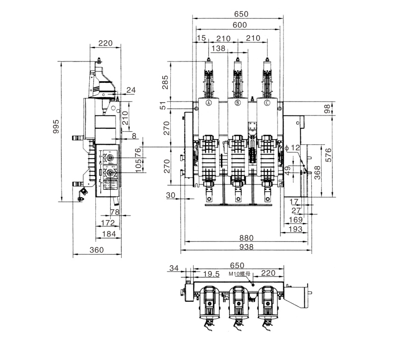新型側(cè)裝窄形高壓真空負荷開關(guān),適用于交流50Hz、10kV的網(wǎng)路中,作為開斷負荷電流及關(guān)合短路電流之用。帶熔斷器的負荷開關(guān)可開斷短路電流是保護變壓器的理想用電設(shè)備。它特別適用于新型500寬環(huán)網(wǎng)供電單元和箱式變電站,能頻繁操作。 三工位真空負荷開關(guān)是具有負荷、隔離、接地三功能的負荷開關(guān),該開關(guān)具有明顯的可見斷口,使用安全。 該負荷開關(guān)由真空滅弧室承擔(dān)電路的關(guān)合和分斷,真空滅弧室與隔離刀是聯(lián)動,即真空滅弧室開斷電路以后隔離刀立即分閘。因而,在分閘時真空滅弧室只承受瞬態(tài)恢復(fù)電壓,分閘后由隔離斷口承擔(dān)工頻和沖擊電壓。 將處于分閘狀態(tài)的負荷開關(guān)的手柄反時針轉(zhuǎn)動時就驅(qū)動隔離刀向關(guān)合方向運動,同時,也給合閘彈簧儲能。當(dāng)隔離刀關(guān)合到位,合閘彈簧儲能過中真空滅弧室在過中簧的帶動下快速關(guān)合。從而實現(xiàn)負荷開關(guān)的關(guān)合過程。