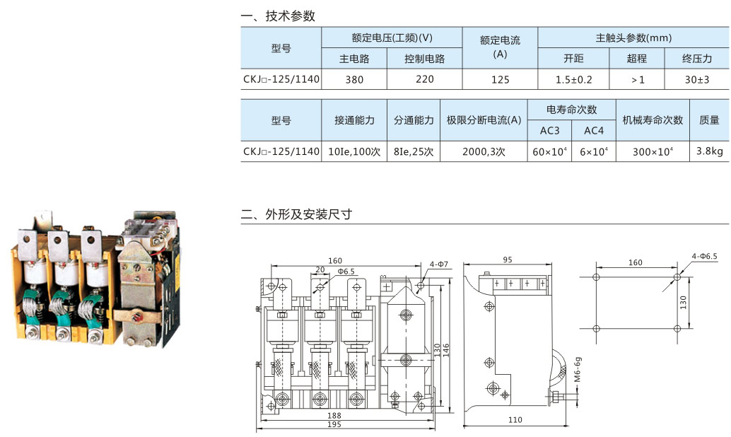 • CKJ□-125/1140型(臥式)交流真空接觸器