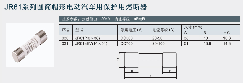 JR61(10*38)系列電動汽車用圓筒帽形熔斷器