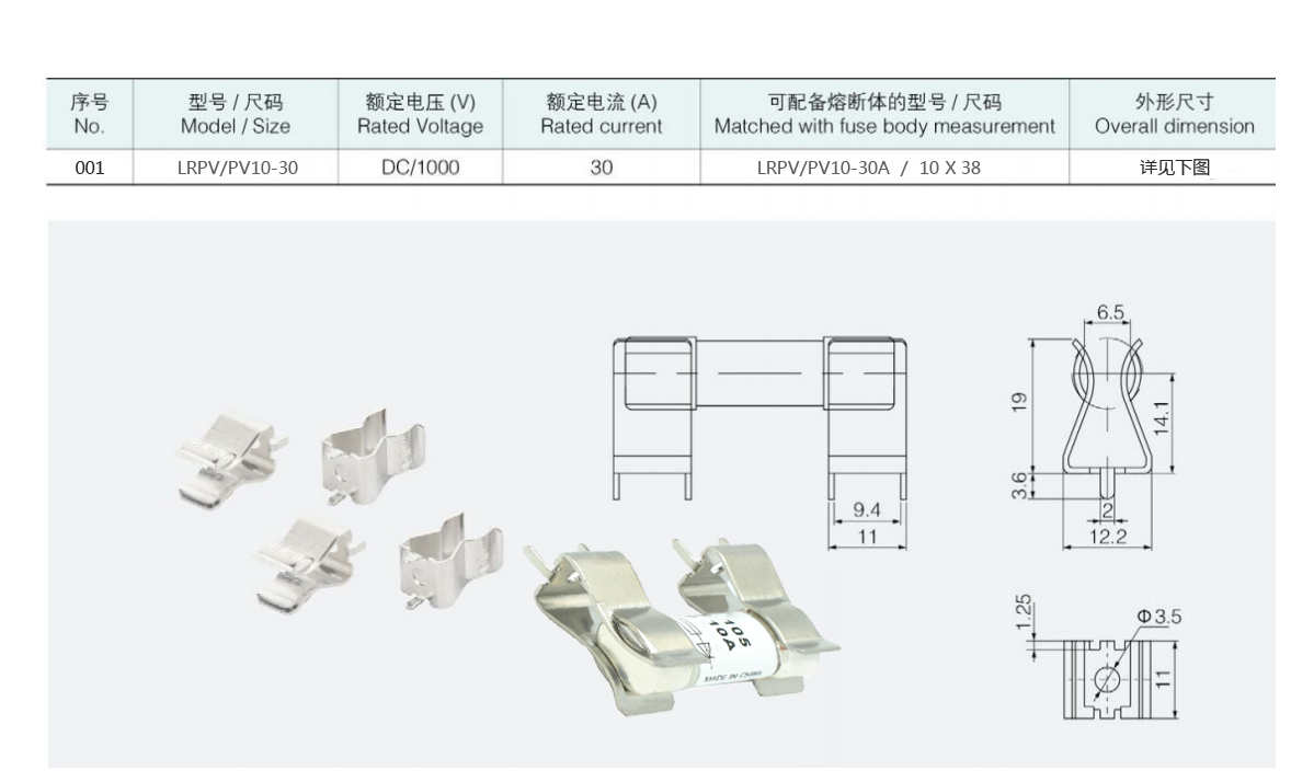 PV1-30光伏熔斷器熔夾、PV10-30光伏熔斷器熔夾、PV1-20光伏熔斷器熔夾、光伏匯流箱熔斷器熔夾