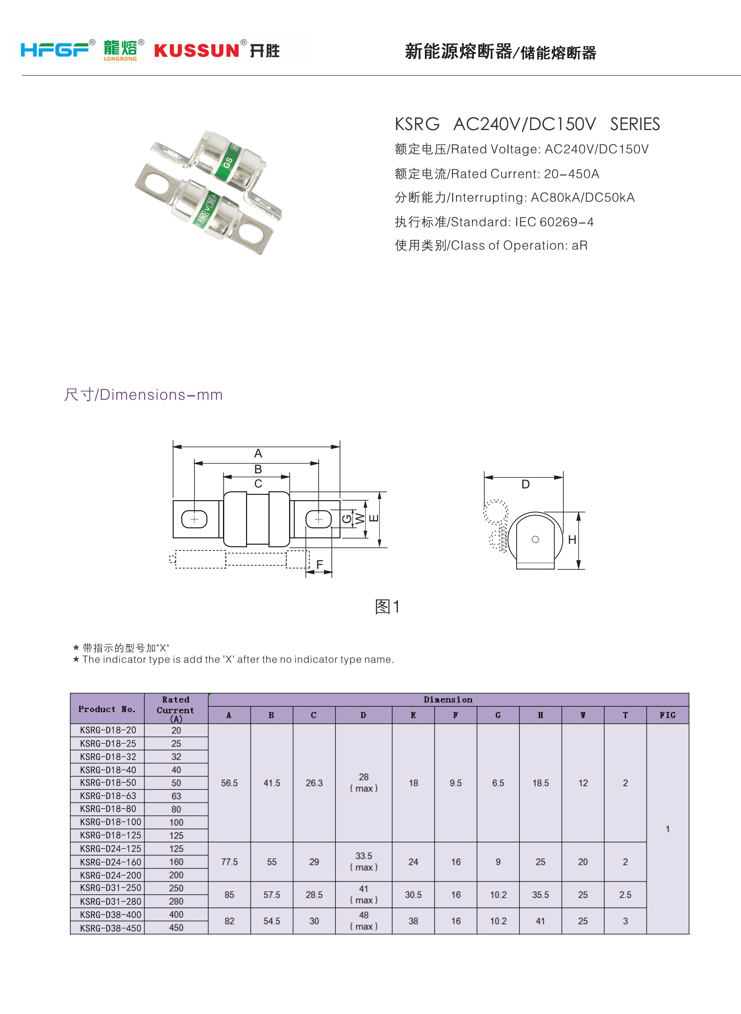 • KSRG 150VDC系列儲能熔斷器 圓管螺栓型/新能源熔斷器