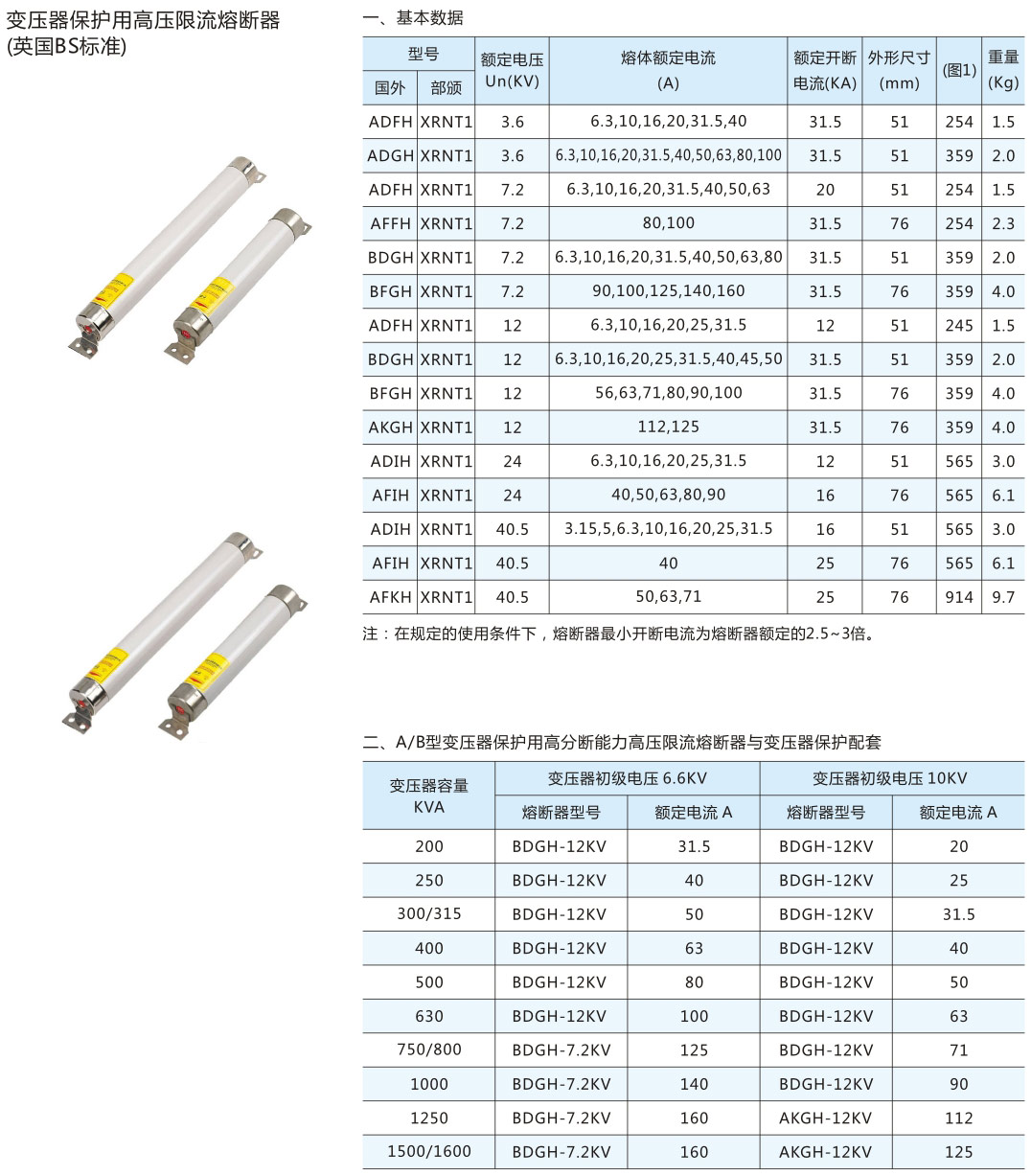 • XRNT1系列變壓器保護用高壓限流式熔斷器(英國BS標(biāo)準(zhǔn))